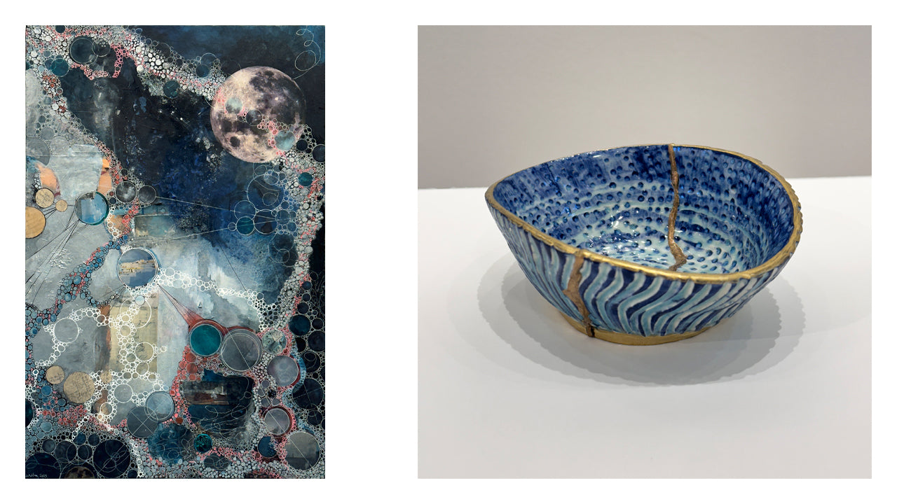 Paintings, pottery, 4 jewelry designers, sculpture, photo encaustics, mixed media, botanical collage, photography, blown glass, handmade cards, Souderton tees...yup, all that and more. We're thrilled to open a brand new show of the best art and craft in the region! This show runs through November 1.