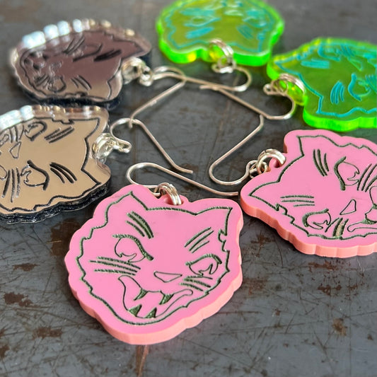 Halloween Cat Earrings - Turquoise on Matte Pink