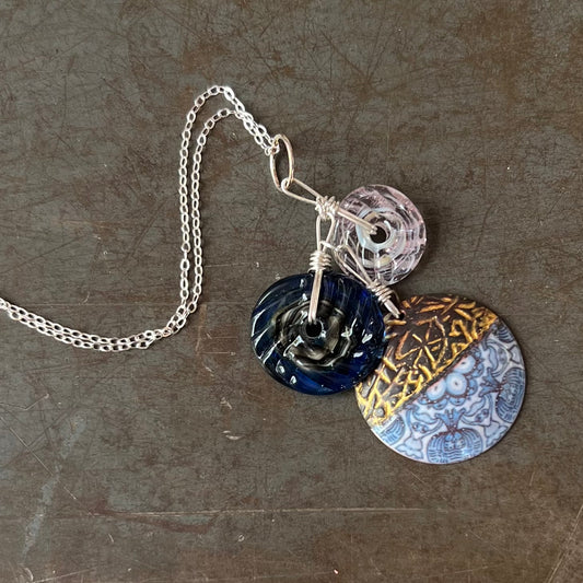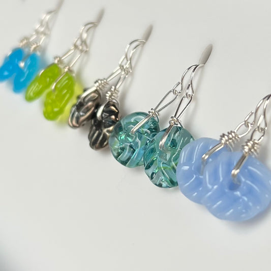 Heather's hand melted glass beads and expert metal smithing come together for unique fun colorful jewelry