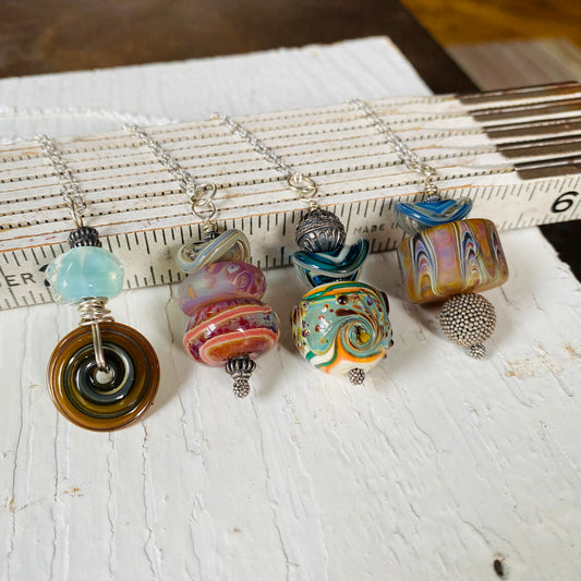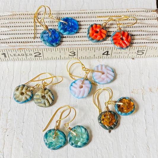 Heather's hand melted glass beads and expert metal smithing come together for unique fun colorful jewelry