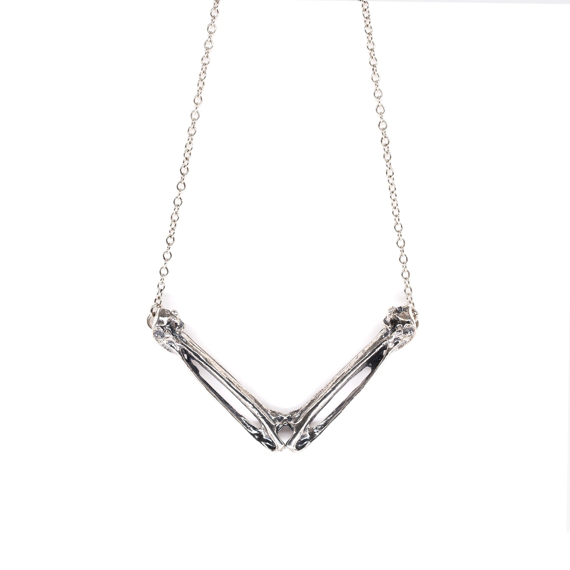 Handmade jewelry by Kaya Tinsman. Solid sterling casting of little animal bones with Rainbow Moonstone.
