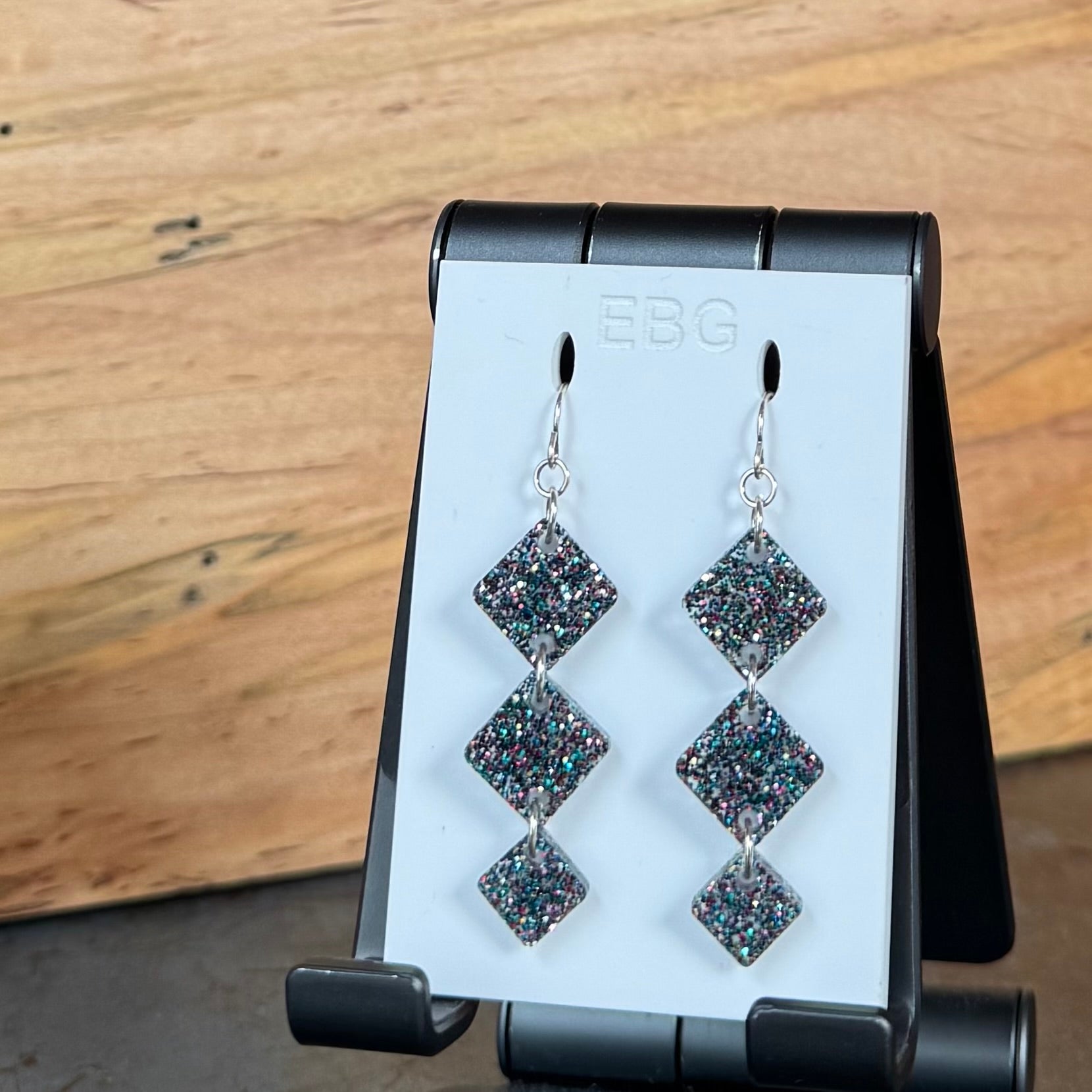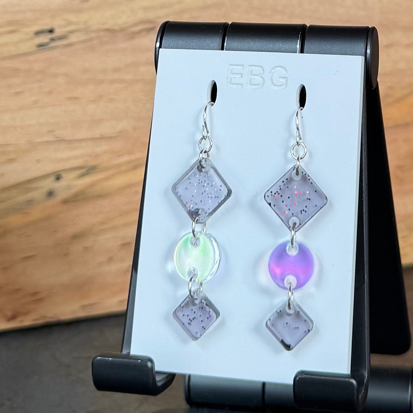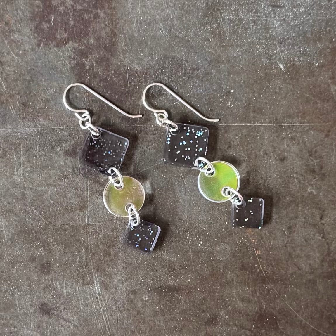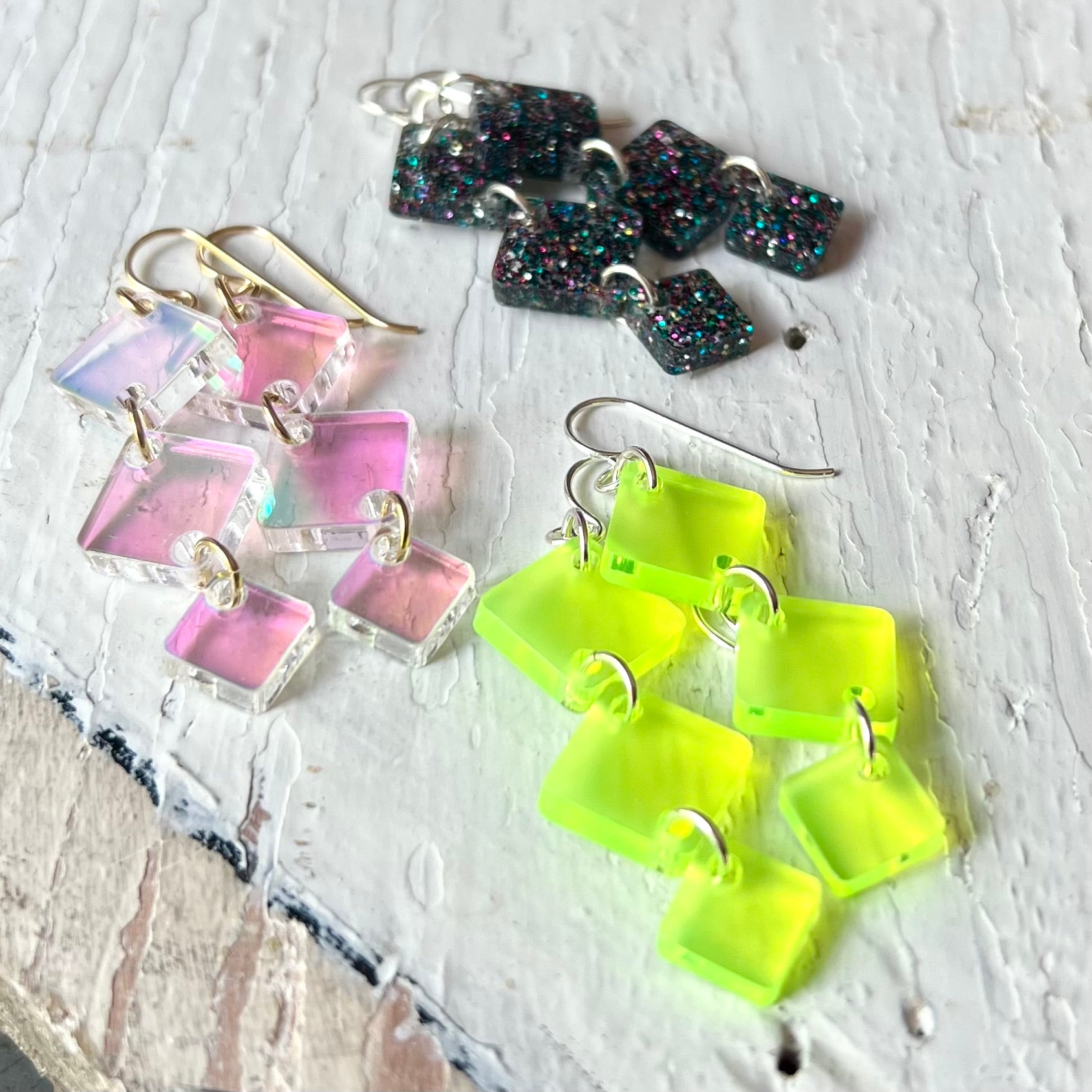 Fun and funky acrylic earrings from Boiler Room Studio. All wire components are solid sterling silver.