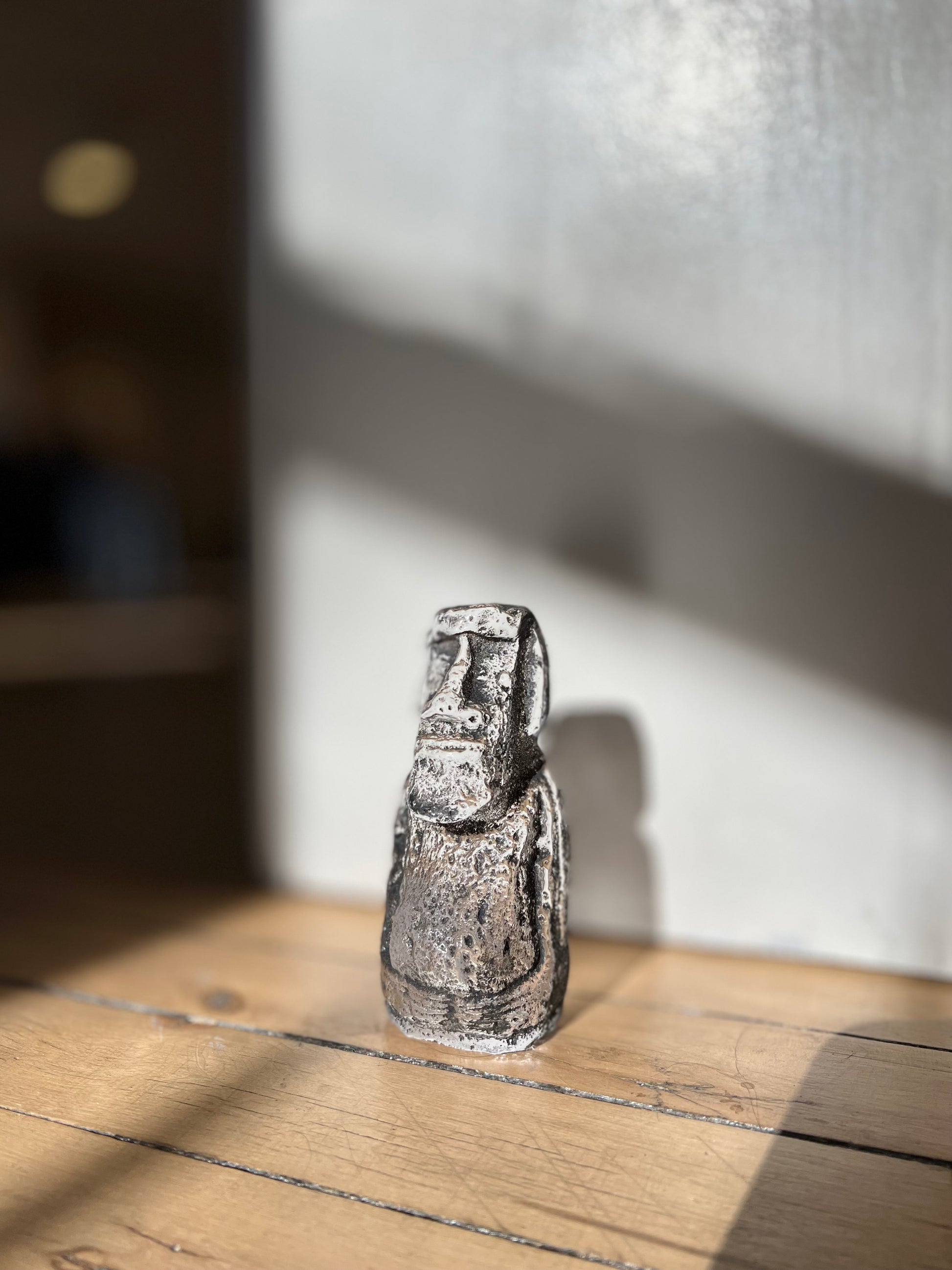 Glass feature sculpture by Scott Staats of a Moai statue from Easter Island (small size: 5" high). Molten glass cast in sand.