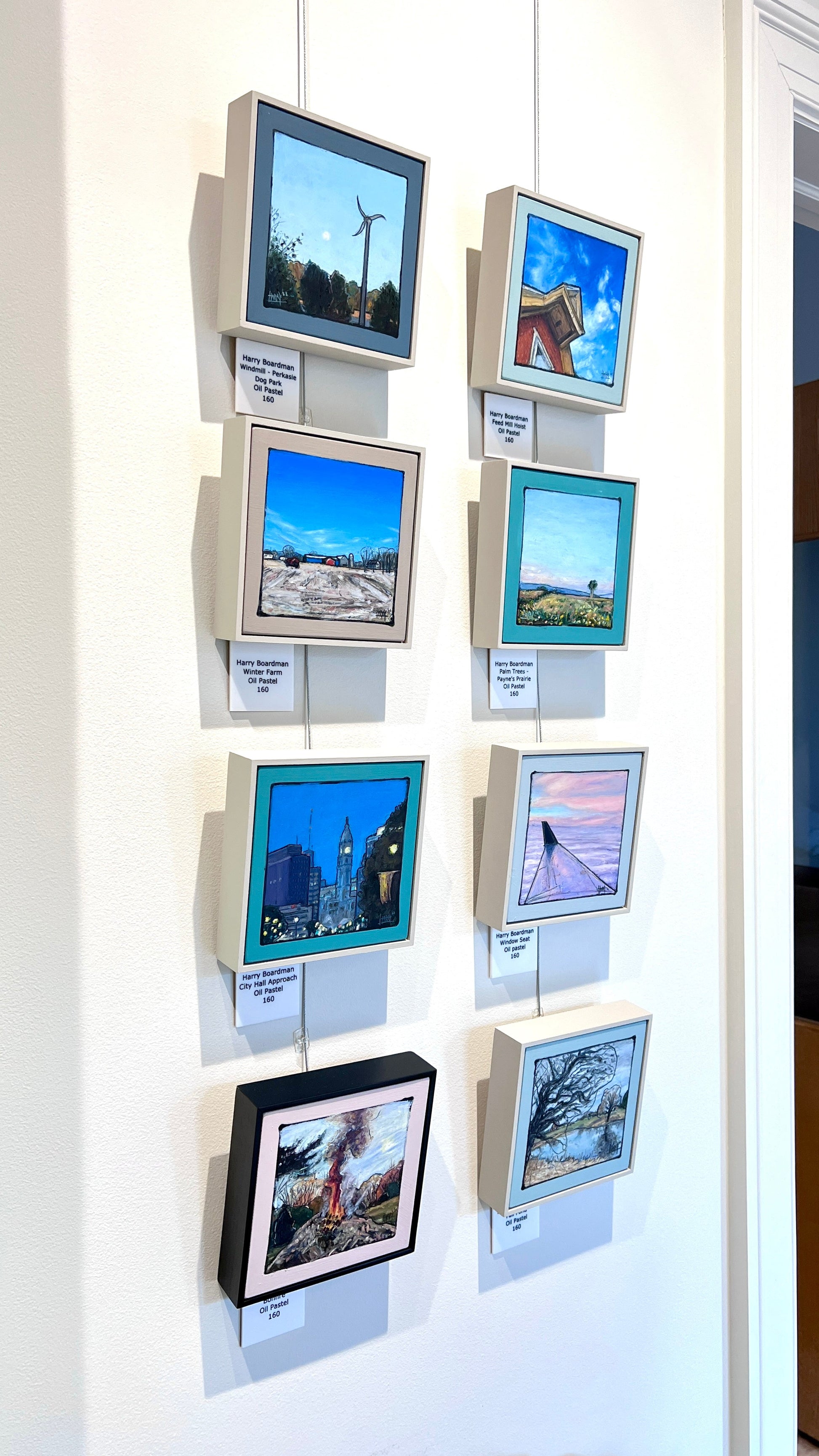 Original oil pastel painting by Harry Boardman. 6.5”x6.5” (1.5" deep) including frame. Can be displayed on a wall or can sit on a shelf/flat surface.