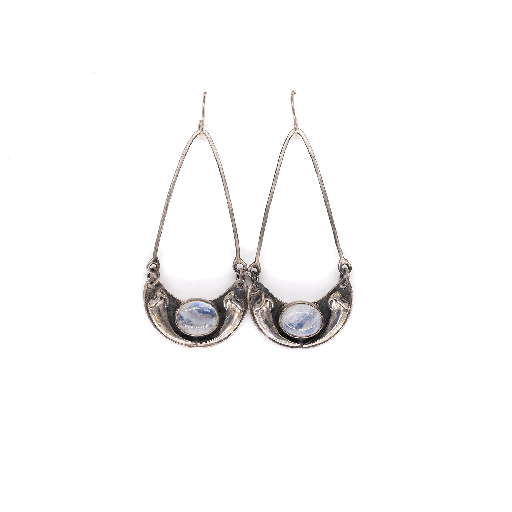 Fox Claw Crescent with Rainbow Moonstone Earrings
