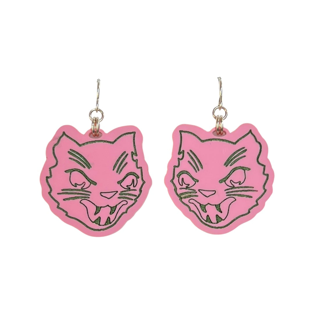 Halloween Cat Earrings - Turquoise on Matte Pink