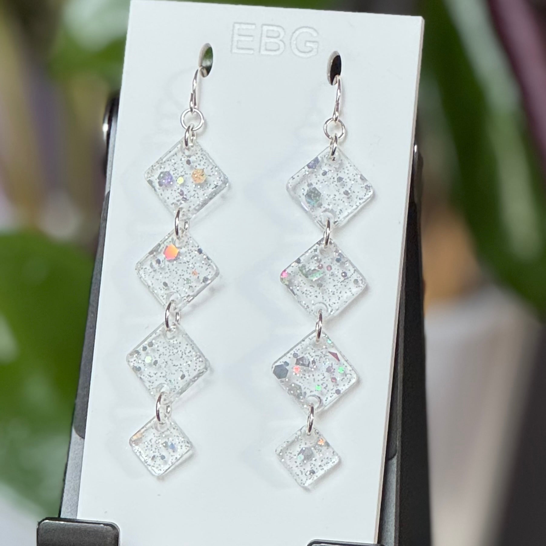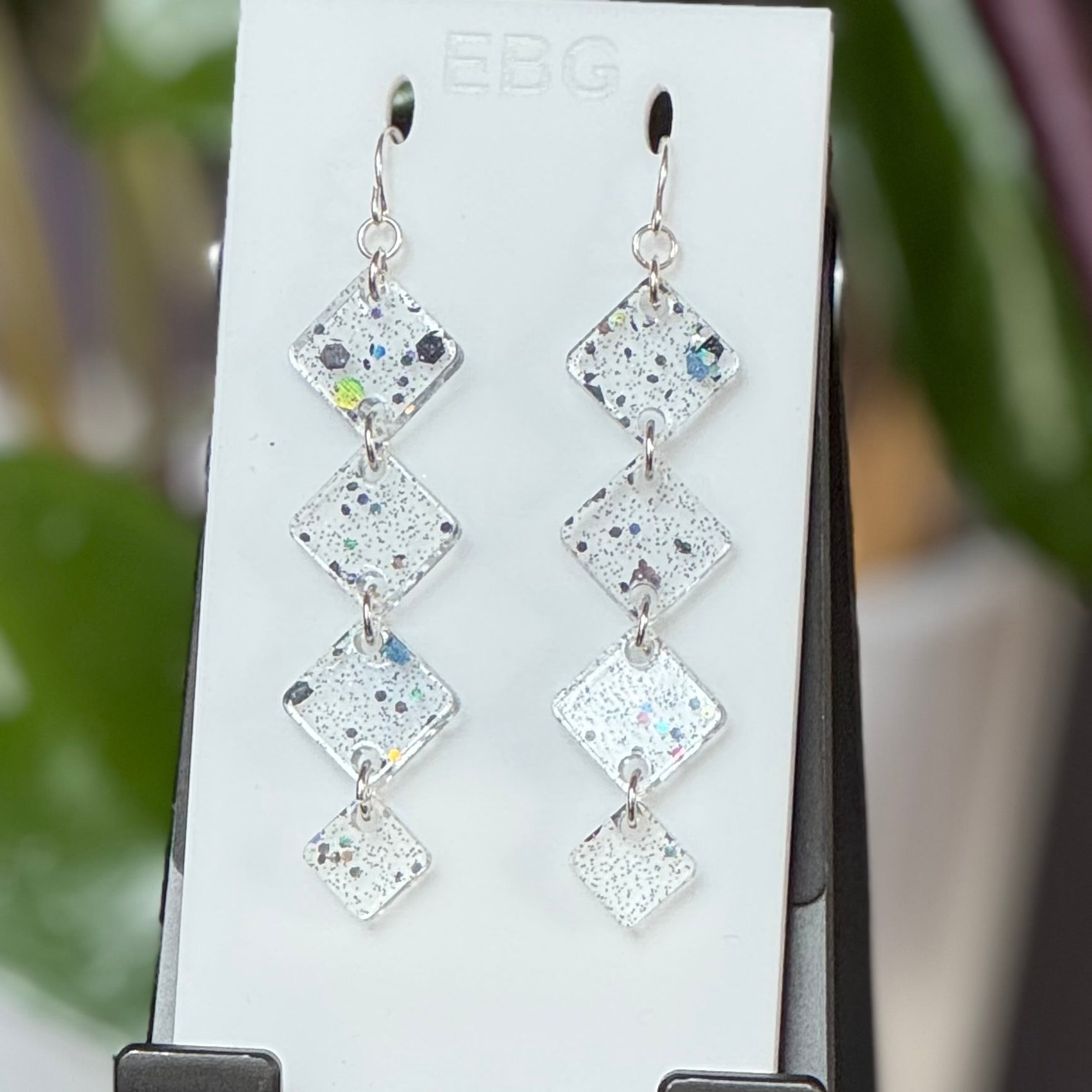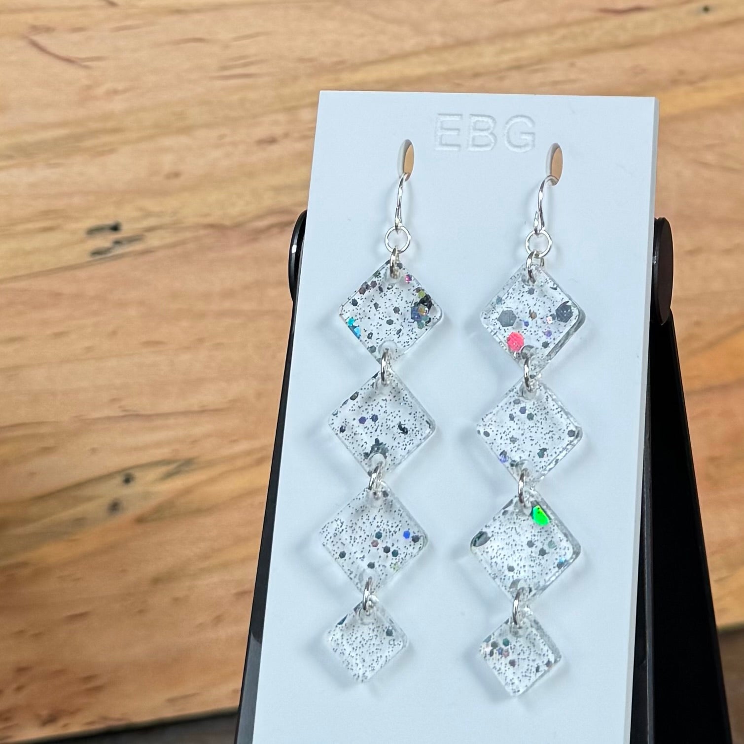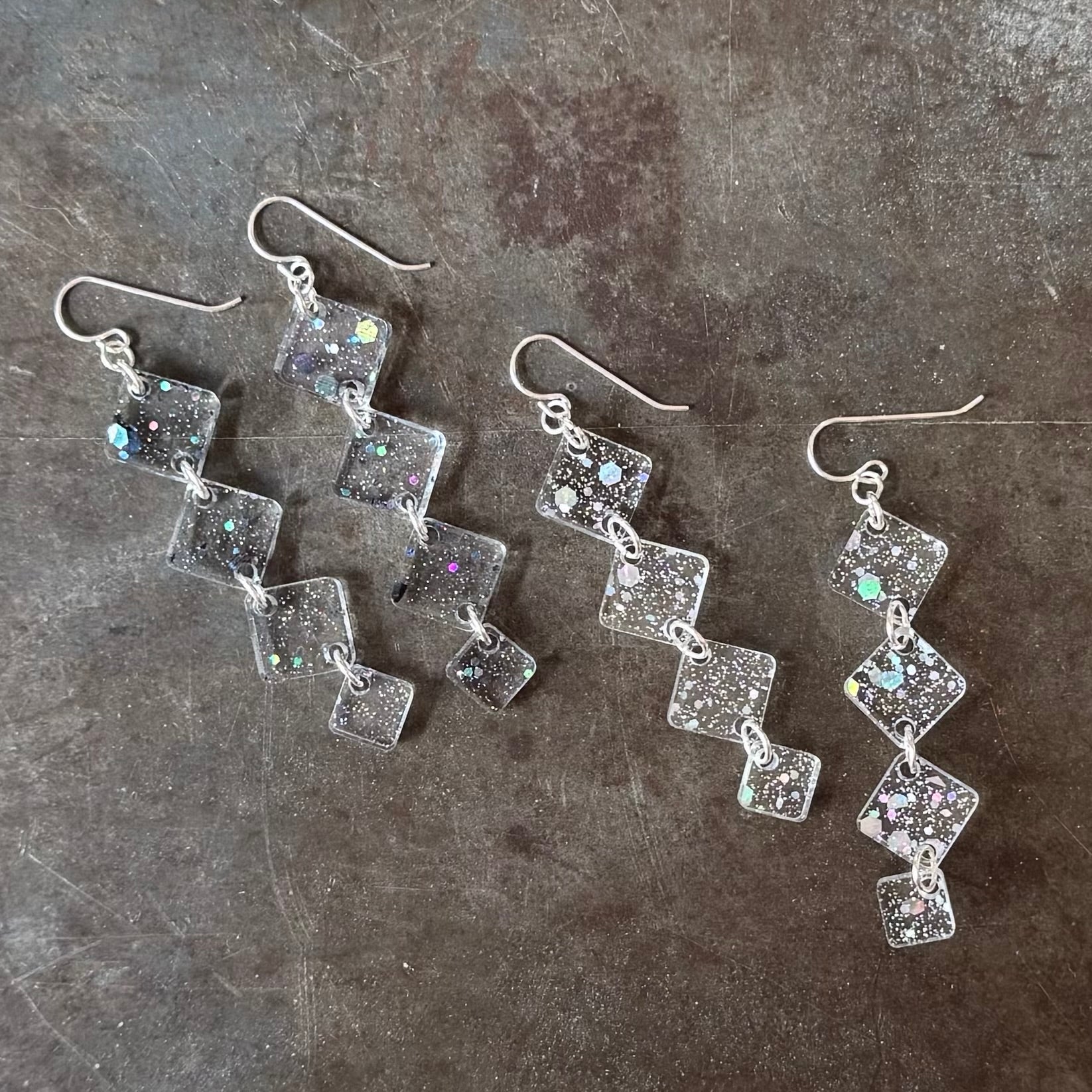 Fun and funky acrylic earrings from Boiler Room Studio. They have great presence, a lot of movement, and are very lightweight.