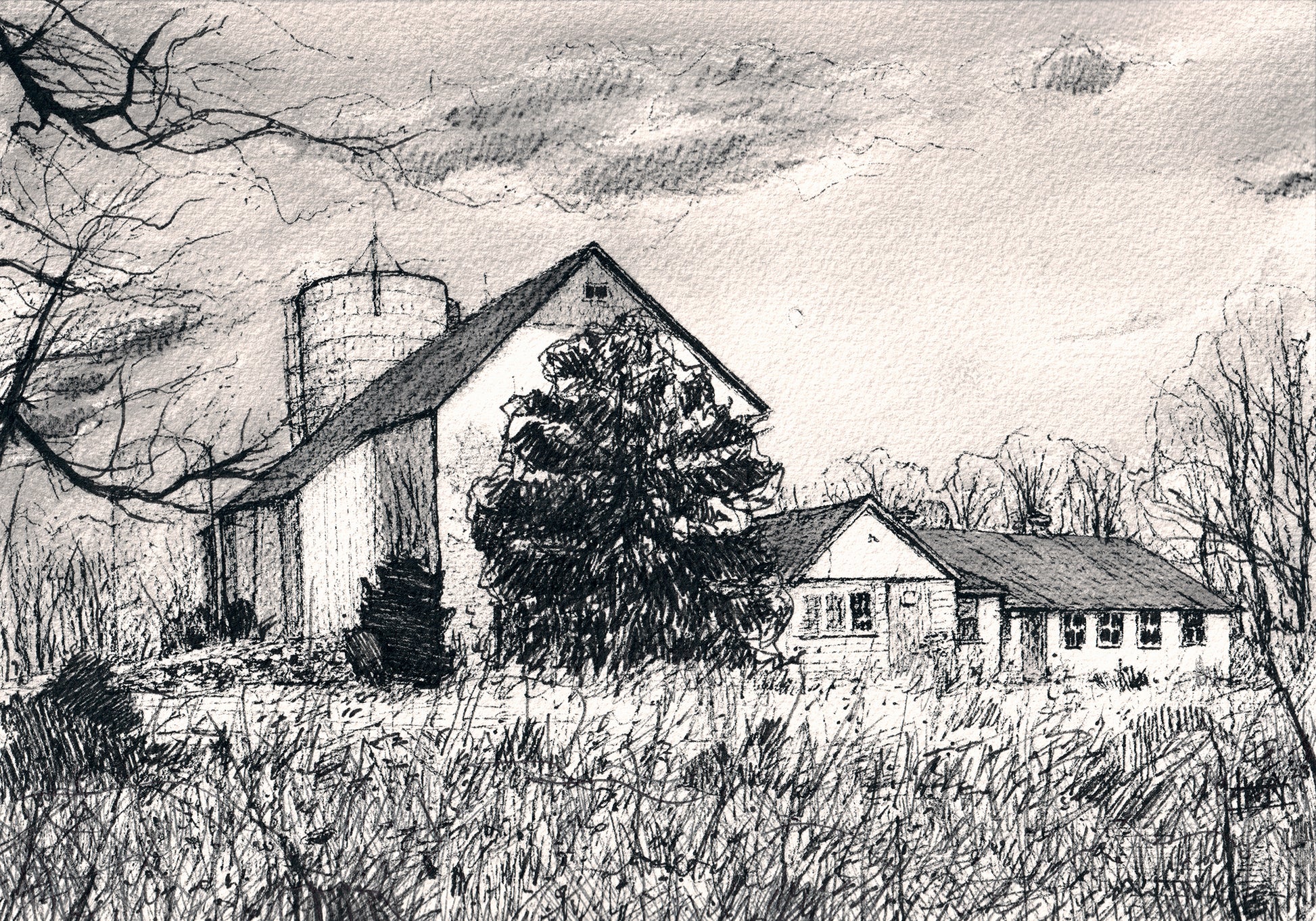 Original ink drawing by Harry Boardman. Matted and ready for the frame of your choosing (matted to fit an 11"x14" frame)