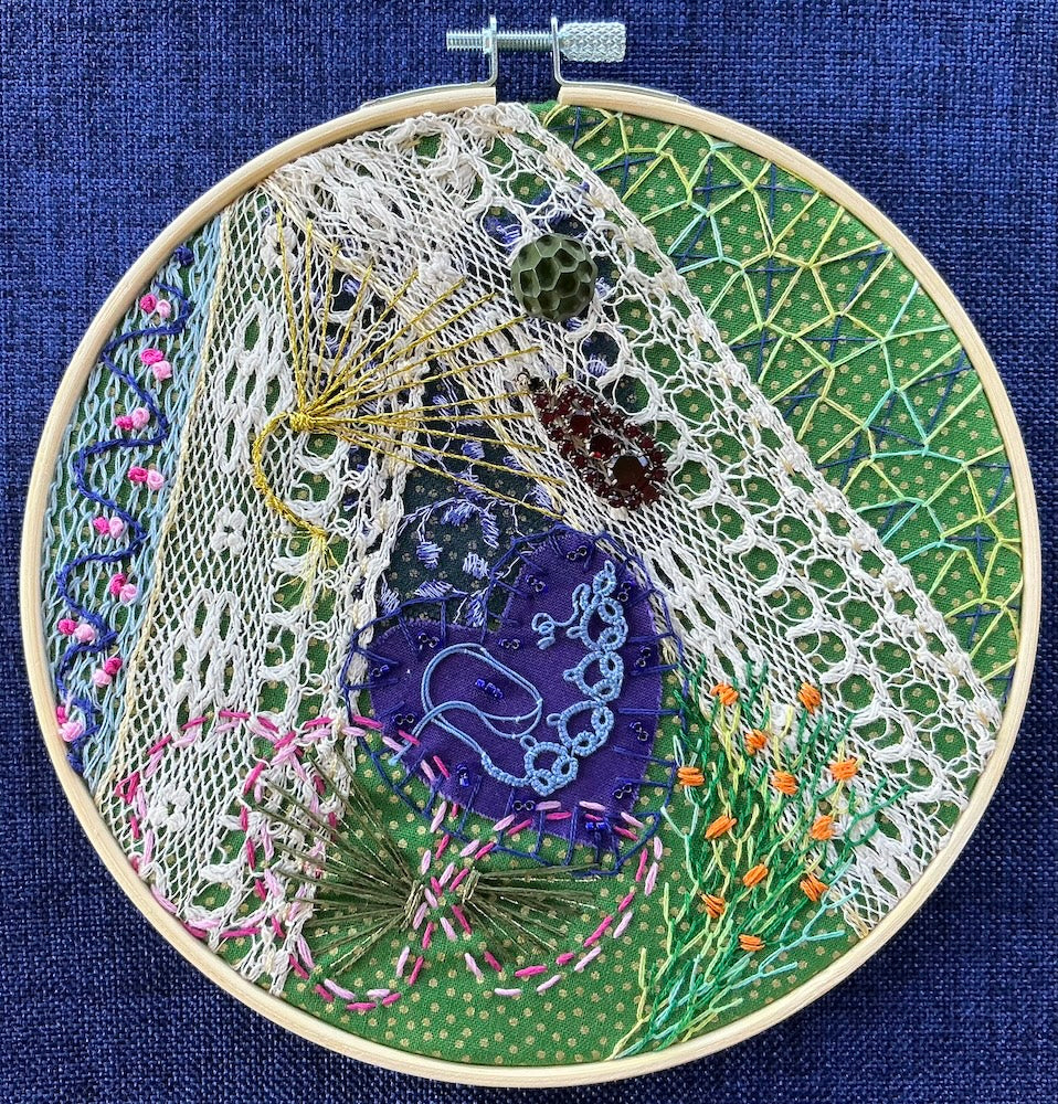 Original fiber art by Janice Arrowsmith. Ready for your wall, 7".
