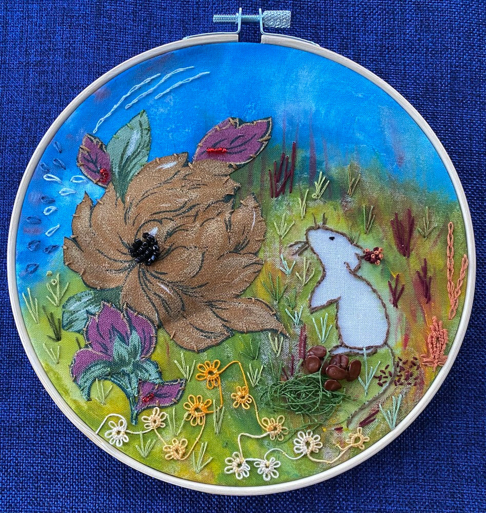 Original fiber art by Janice Arrowsmith. Ready for your wall, 7".