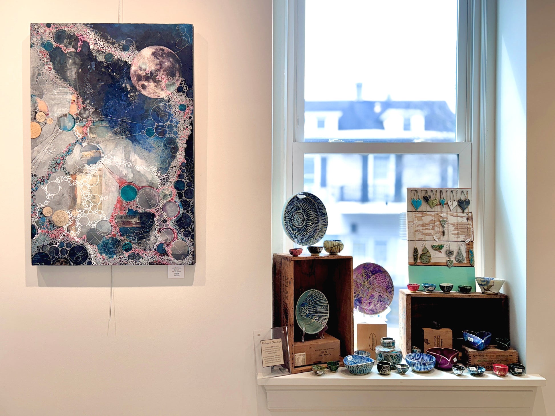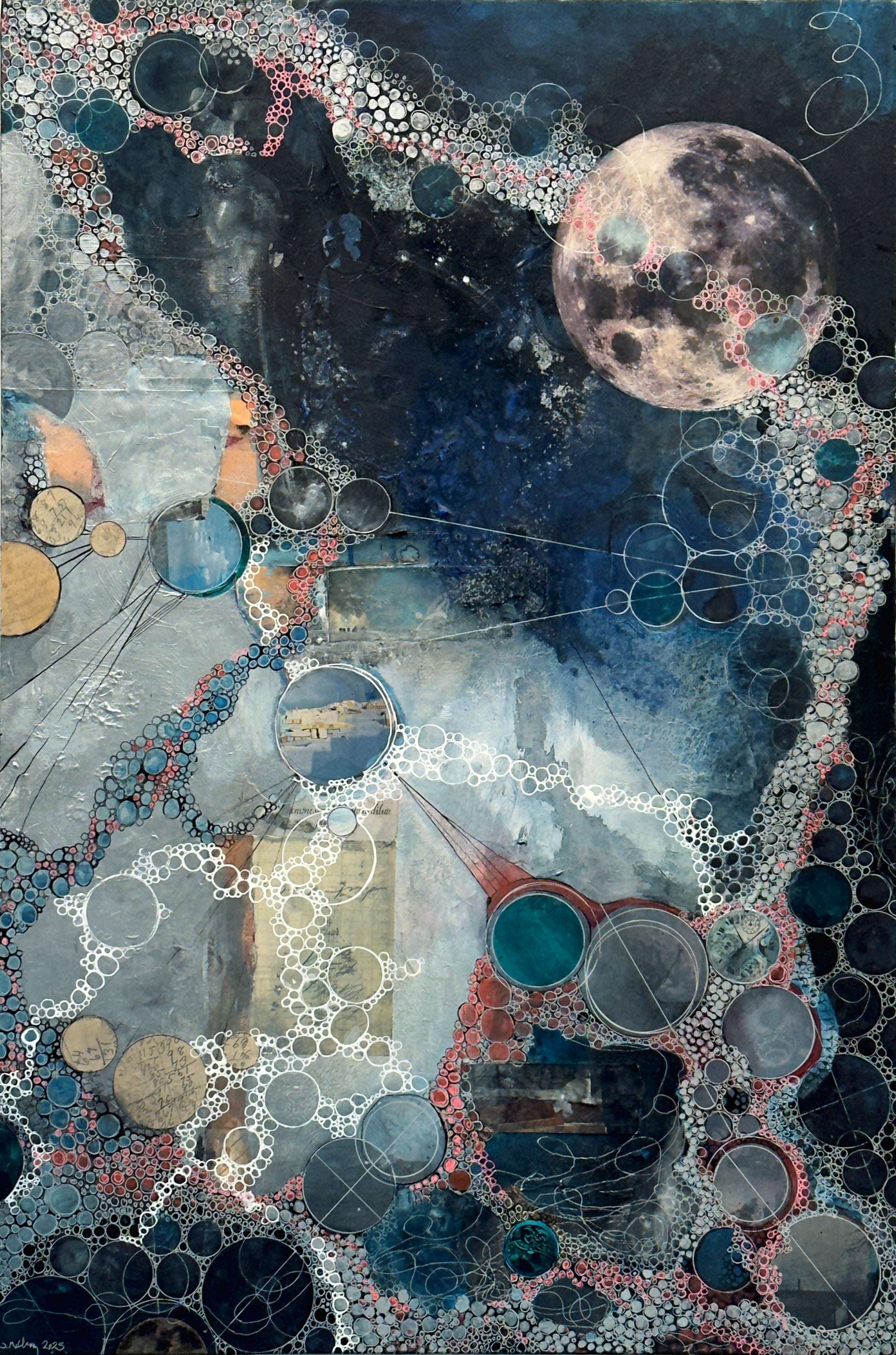 Original mixed media collage by Jen McCleary. Ready for your wall, 24" x 36" - gallery wrapped canvas, sides are painted black