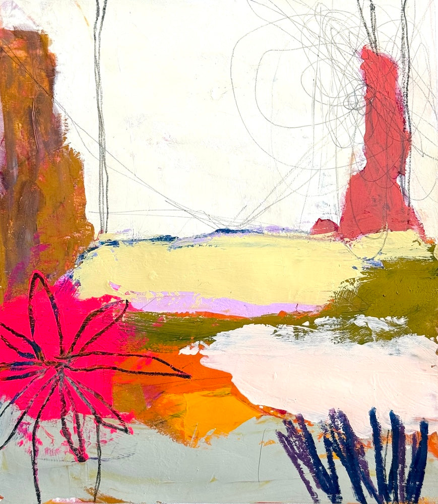 Original gouache oil pastel pencil painting by Tracey Howard. Ready for your wall, 14" x 11".