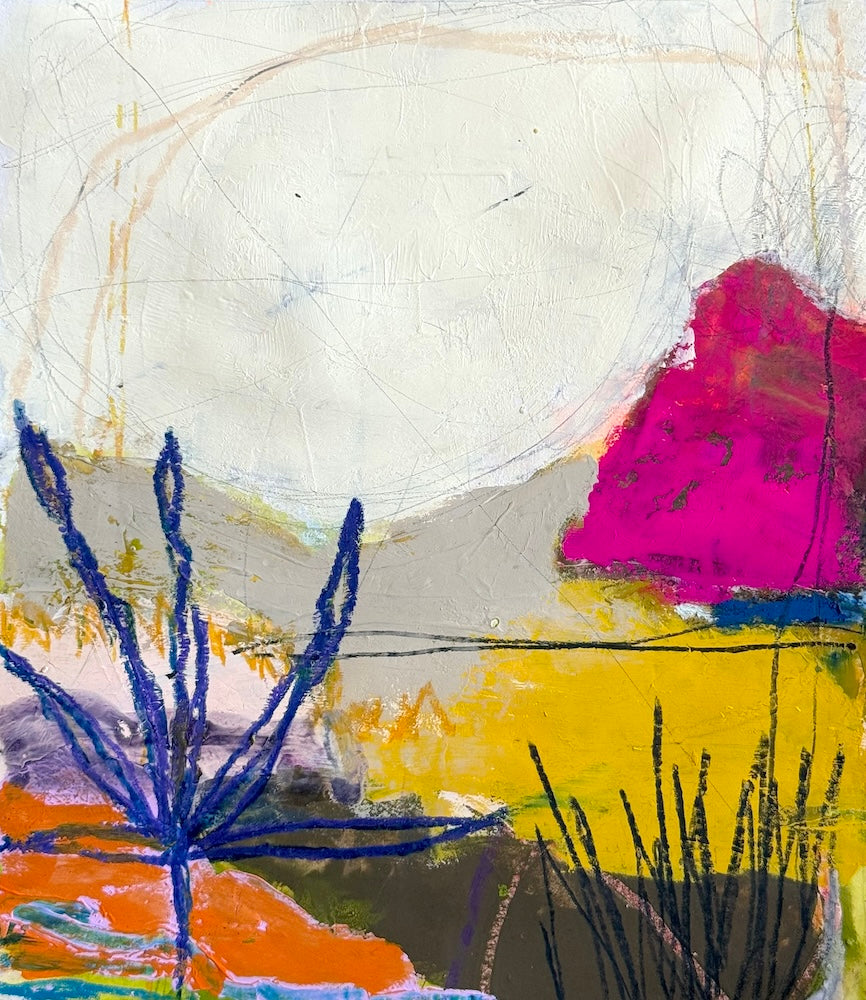 Original gouache oil pastel pencil painting by Tracey Howard. Ready for your wall, 14" x 11".