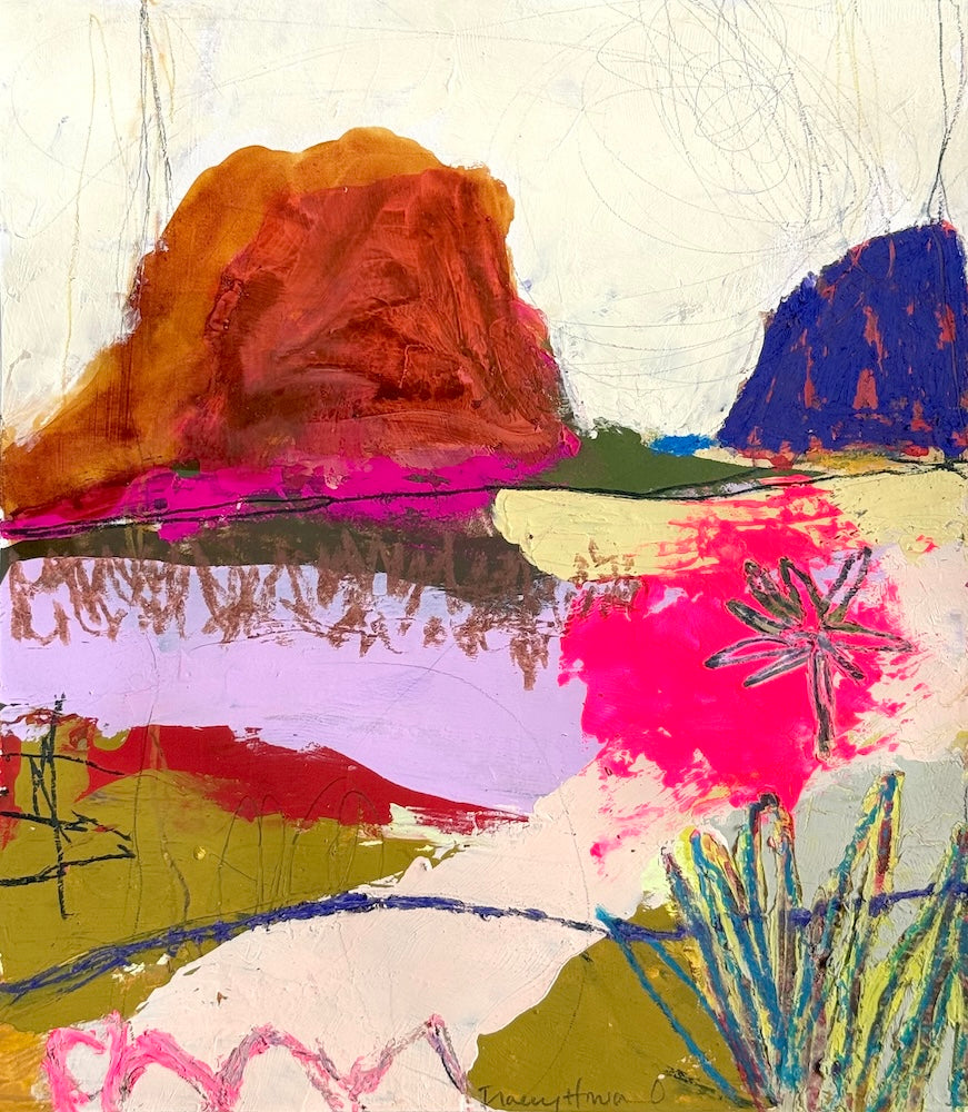Original gouache oil pastel pencil painting by Tracey Howard. Ready for your wall, 14" x 11".